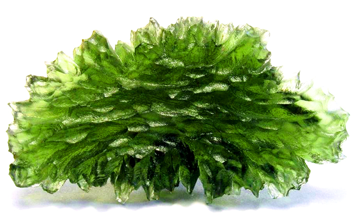 A moldavita é um cristal formado pelo impacto de meteoritos. Foi encontrada pela primeira vez na República Tcheca, em 1787 e tem seu nome relacionado ao rio Maldau, que passa pelo cidade de Praga. Este mineral está entre os mais raros já encontrados no mundo. É respeitado há centenas de anos pela humanidade devido às suas propriedades únicas. Atualmente, a Moldavita ainda é um presente considerado nobre e, acredita-se que, o Santo Graal foi decorado com ela.